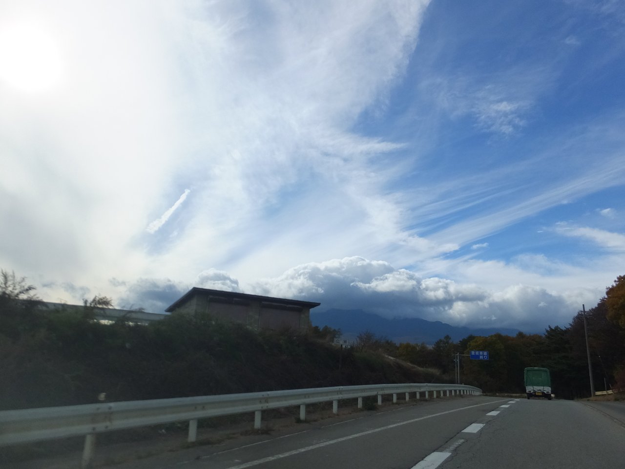 紅葉や空を楽しみつつ、主たる目的である、北杜市側のクリスタルラインの入口へ向けて進む。
